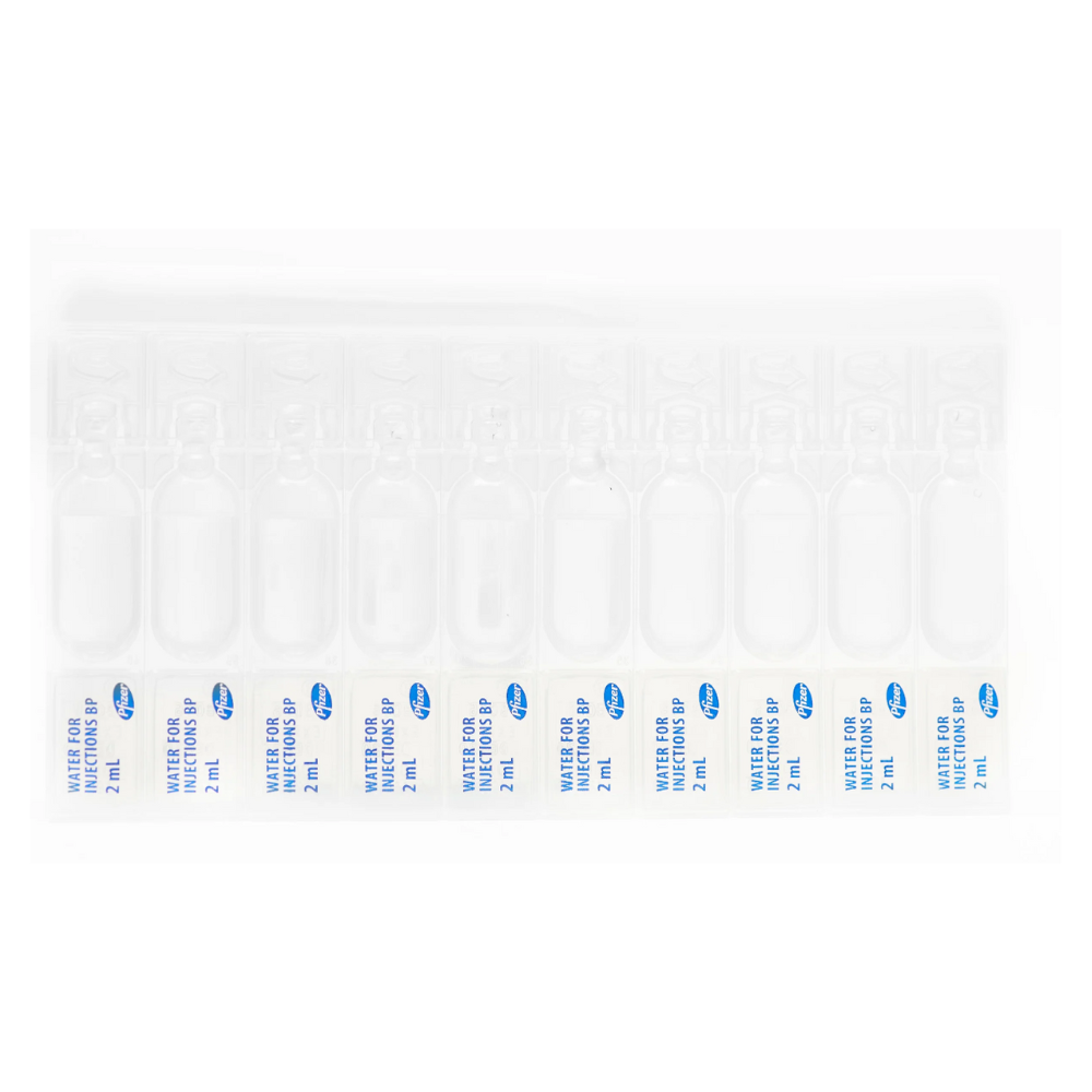 Pfizer Water for Injection BP 10ml Steriluer Ampoules, packaged thoughtfully in a box of 50,...